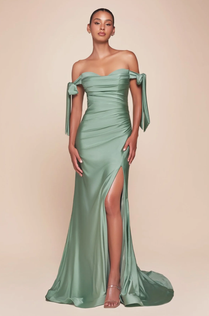 Das Abendkleid Mimiko in Dark Sage ist deine perfekte Wahl für den Abiball oder als elegante Hochzeitsgastin. Das bodenlange Kleid besticht durch sein weiches, glänzendes Jersey-Material und schmeichelt deiner Figur mit einem enganliegenden Schnitt. Der herzförmige Ausschnitt wird durch integrierte BH-Cups gestützt, während die seitlichen Bindebänder dir maximale Flexibilität beim Styling geben. Raffinierte Drapierungen an Taille, Brust und Rücken schaffen eine feminine Silhouette, und der seitliche Beinschlitz verleiht dem Look einen Hauch von Sinnlichkeit. Das leichte, hautfreundliche Material aus 100% Polyester sorgt für ganztägigen Tragekomfort.